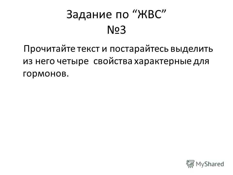 Задание по ЖВС 3 Прочитайте текст и постарайтесь выделить из него четыре свойства характерные для гормонов.