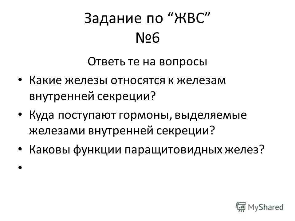 Задание по ЖВС 6 Ответь те на вопросы Какие железы относятся к железам внутренней секреции? Куда поступают гормоны, выделяемые железами внутренней секреции? Каковы функции паращитовидных желез?