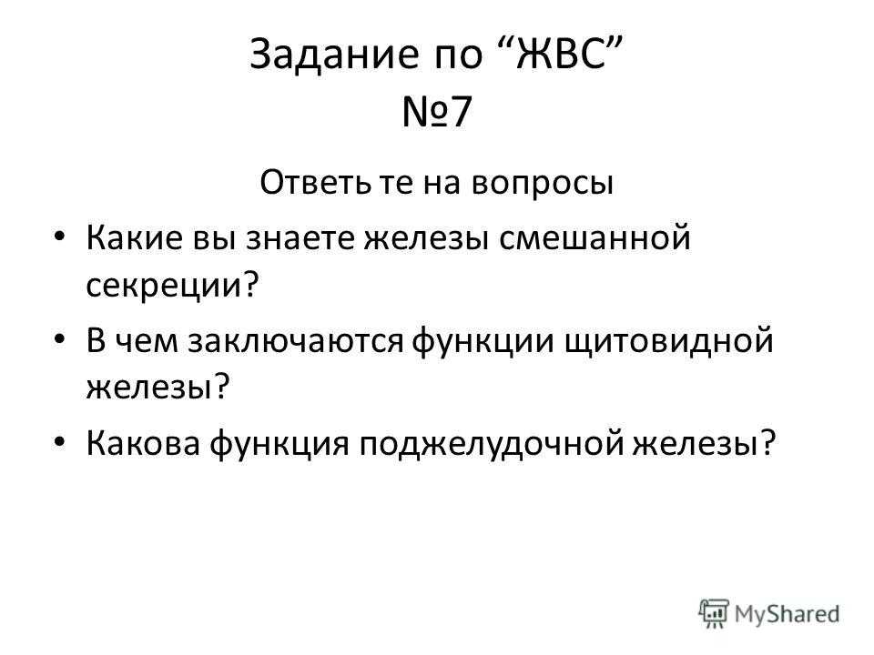 Задание по ЖВС 7 Ответь те на вопросы Какие вы знаете железы смешанной секреции? В чем заключаются функции щитовидной железы? Какова функция поджелудочной железы?