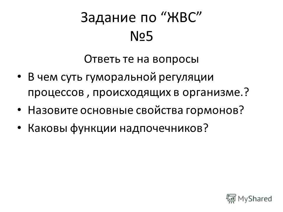 Задание по ЖВС 5 Ответь те на вопросы В чем суть гуморальной регуляции процессов, происходящих в организме.? Назовите основные свойства гормонов? Каковы функции надпочечников?