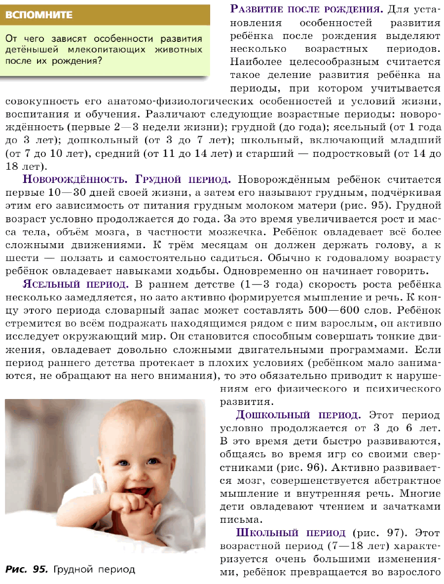 Новорождённость • Грудной, ясельный, дошкольный, школьный периоды • Половое созревание