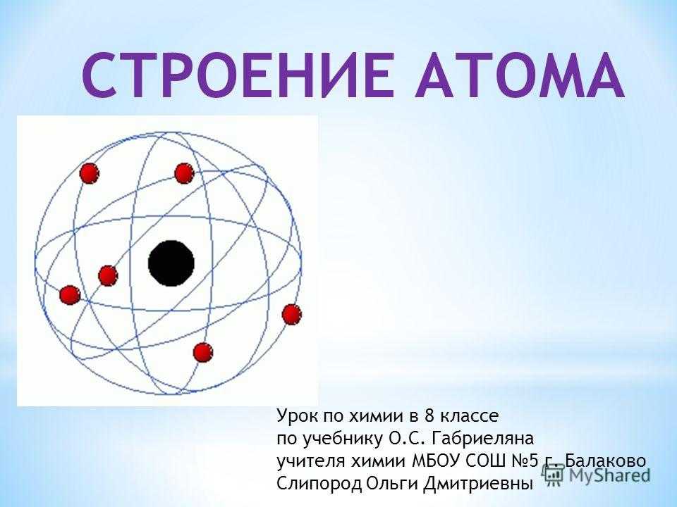 Презентация 8 класса по предмету «Химия» на тему: «СТРОЕНИЕ АТОМА Урок по химии в 8 классе по учебнику О.С. Габриеляна учителя химии МБОУ СОШ 5 г. Балаково Слипород Ольги Дмитриевны.». Скачать бесплатно и без регистрации. — Транскрипт: