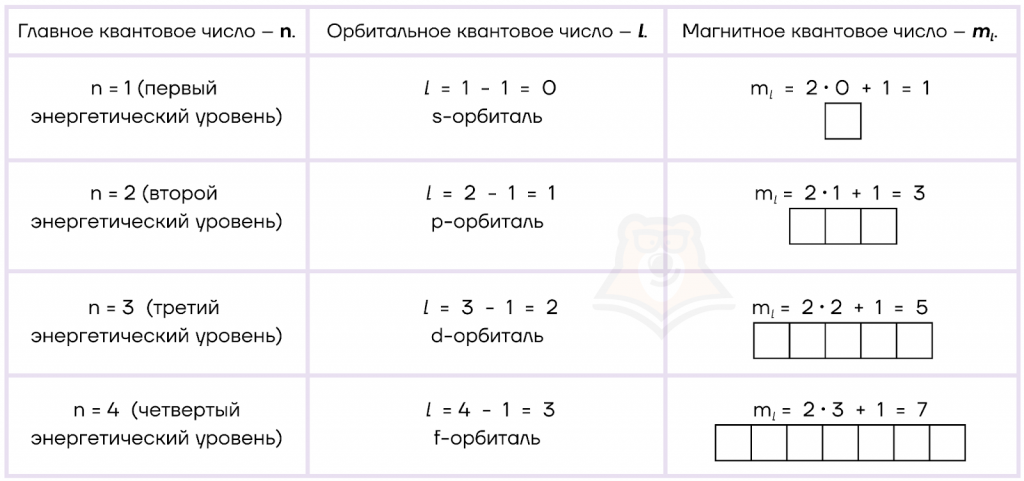 Важно помнить, что количество атомных орбиталей на каждом уровне равно номеру этого уровня.