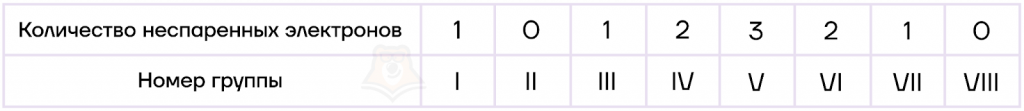 Запоминалка: существует последовательность чисел, которая позволяет определить количество неспаренных электронов для атомов главных подгрупп: 1-0-1-2-3-2-1-0.