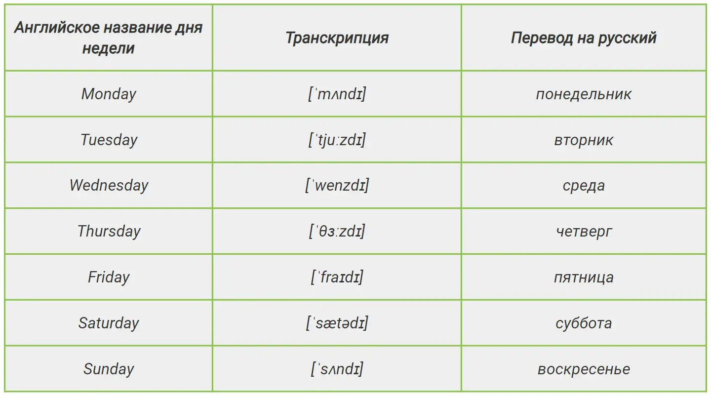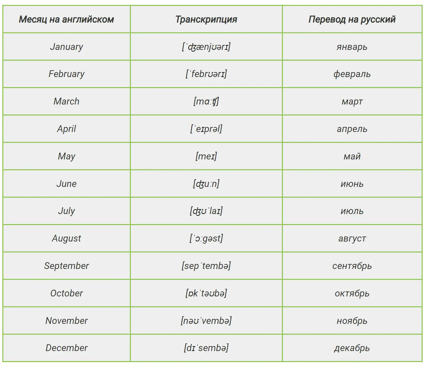 Важно знать, что обозначение дней недели и названий месяцев на письме отличается от нашего языка. В английском языке они пишутся с заглавной буквы