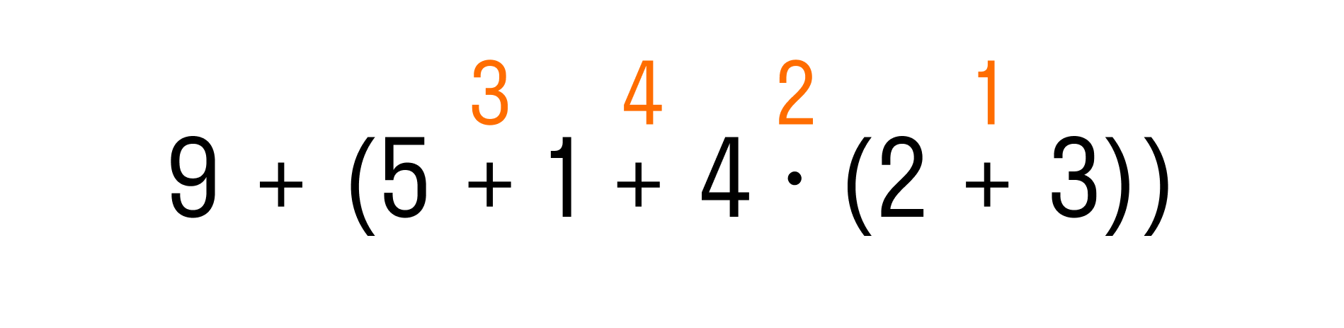 - Каждая скобка раскрывается последовательно, начиная с внутренней.