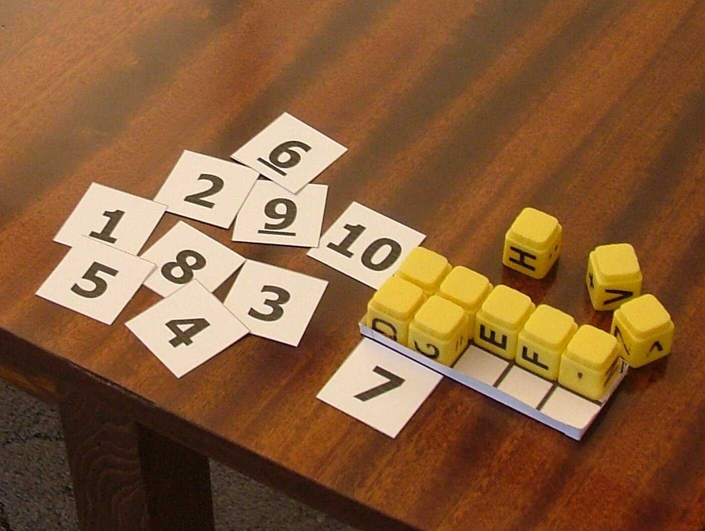 Сначала понадобится 5 штук, коробка с расчерченными клетками, карточки с написанными числами.