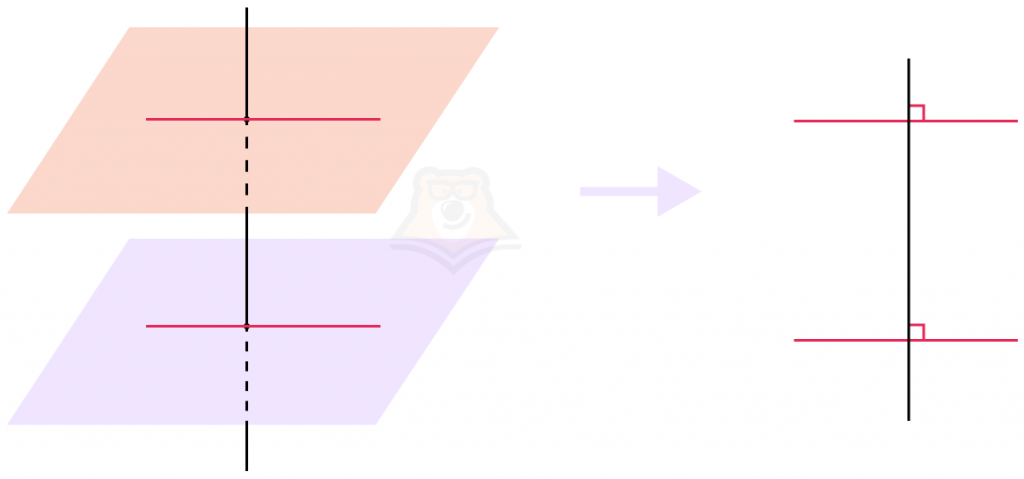 Тут такие же рассуждения, как и в предыдущем свойстве: достаточно построить прямые, принадлежащие плоскостям, и посмотреть на них “сбоку”.