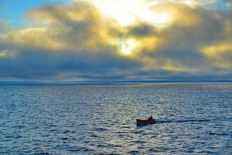 Площадь акватории этого водоёма – 90 кв км. Не сразу скажешь, что это – одно из самых маленьких в России, меньше только Азовское. Почти со всех сторон его окружает суша, только небольшая часть воды касается Баренцева моря.