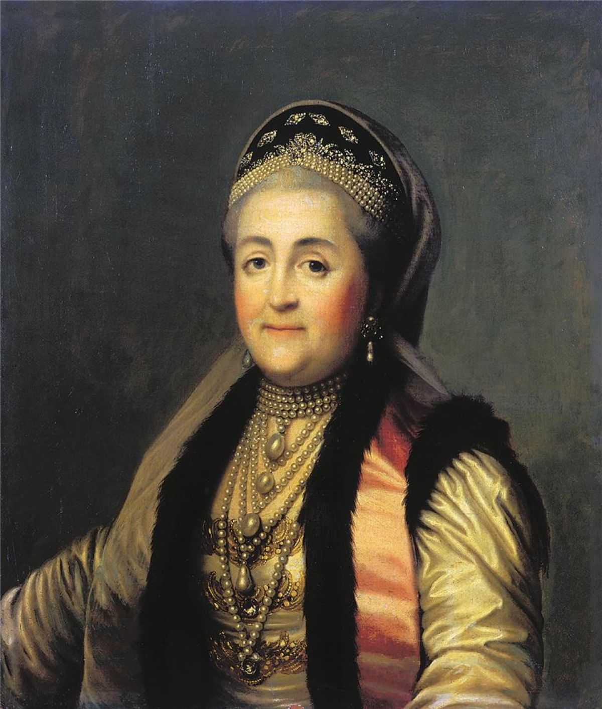 Портрет Екатерины II в шугае и кокошнике. Картина Вигилиуса Эриксена
