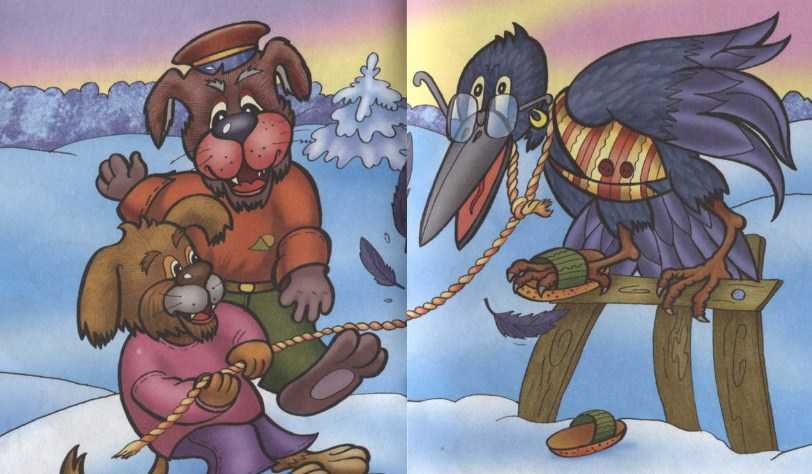 Собаки увидали зайца, бросили ворону — да за ним, а ворона опять на забор.
