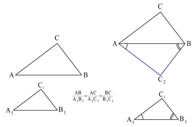 Пусть у этих треугольников $\angle A=\angle A_1,\ \angle B=\angle B_1,\ \angle C=\angle C_1$. Введем следующее определение: