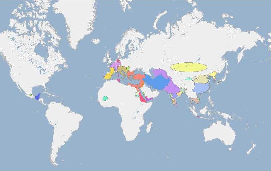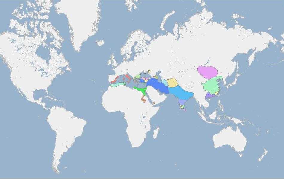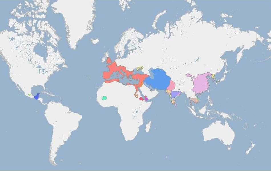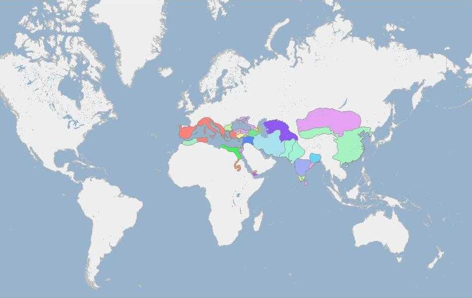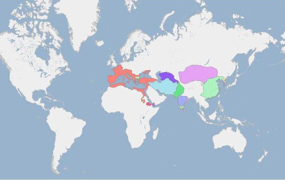 Монголии (фиолетовая), Римская Империя — красная.