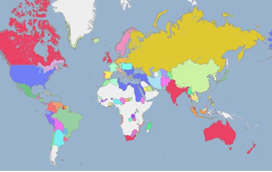 (красный). Красным цветом — Австралия, Индия, ЮАР. В Африке пока пустовато.