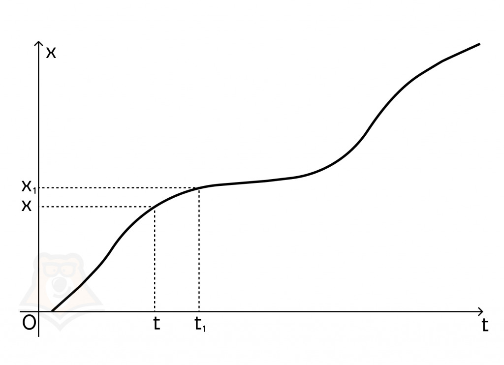 Предположим, что некоторая точка движется прямолинейно, и ее путь можно описать по закону х(t). То есть за определенное время t точка пройдет расстояние х.