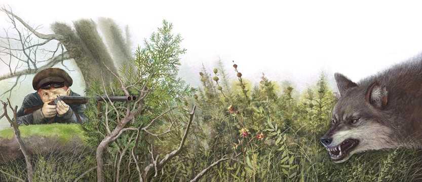 Митраша испытывал муки голода. Он собрался было подстрелить зайца, которого пригнала Травка, вскинул ружье — и увидел перед собой морду волка. Мальчик, не медля, выстрелил в упор. Тем и завершилась разбойничья жизнь Серого помещика.
