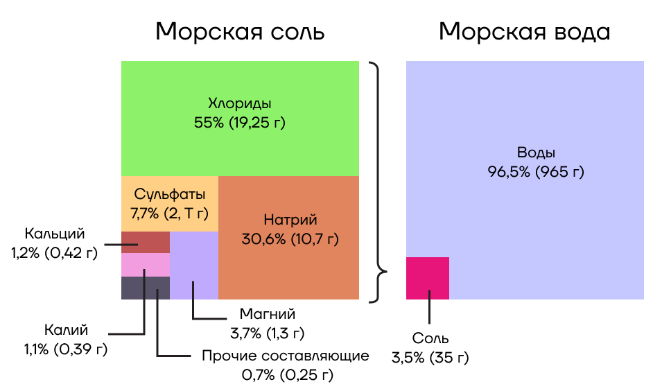 Соленость морской воды не одинакова, однако в среднем в ней содержится на 1000 частей 35 частей соли.
