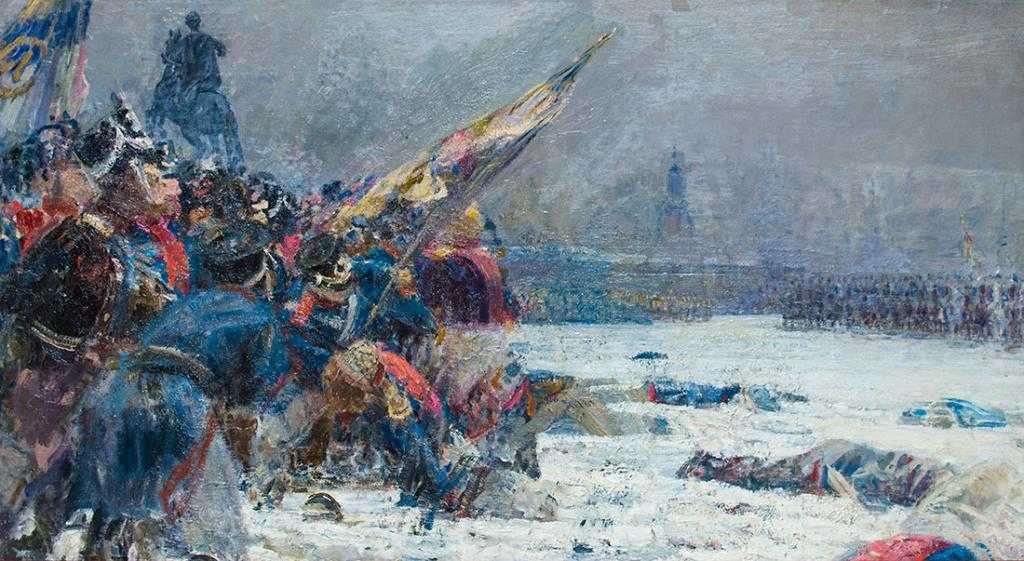- начался обстрел площади, восставшие отступили на лед Невы, к Петропавловской крепости, но снова были обстреляны; к вечеру с восстанием было покончено.