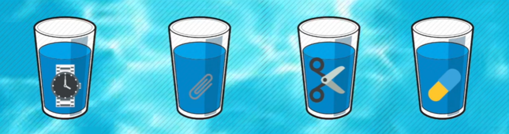 Представьте, перед вами четыре стакана, наполненных водой. В каждом стакане находятся предметы. Так: