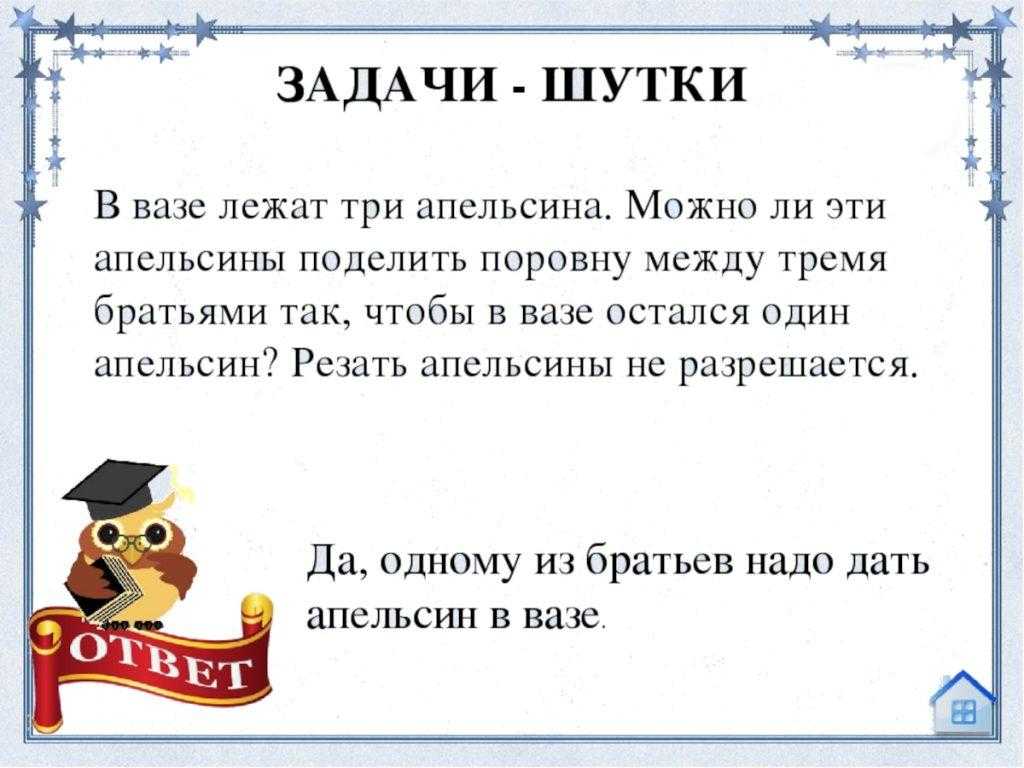 Помимо задач хотелось бы предложить загадки с подвохом. По возможности уделите время их решению, это будет увлекательно.