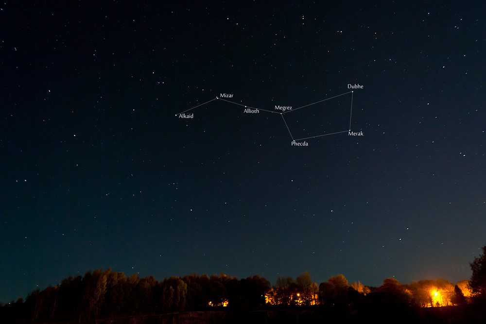 В разные времена года Большая Медведица находится в разных частях неба. Летом она можно найти на северо-западе, осенью — на севере, зимой — на северо-востоке, а весной она будет прямо над вашей головой.